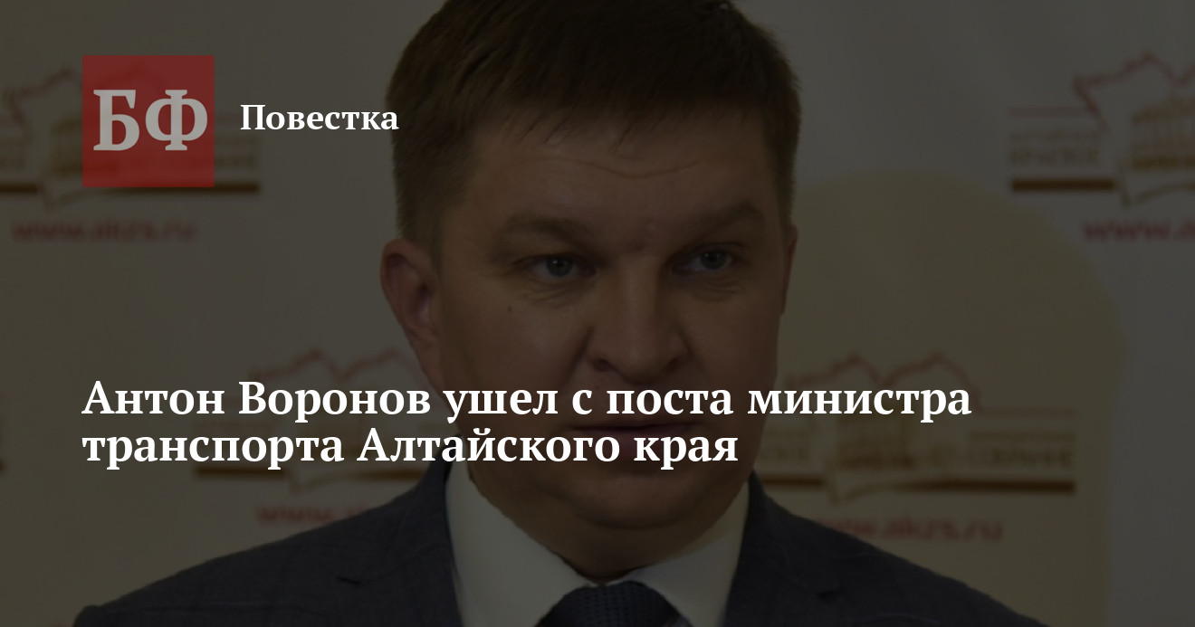 Глава Минтранса Алтайского края Антон Воронов покинул должность. Как сообщила пресс-служба правительства региона, пост занял его заместитель Александр Мошкин.