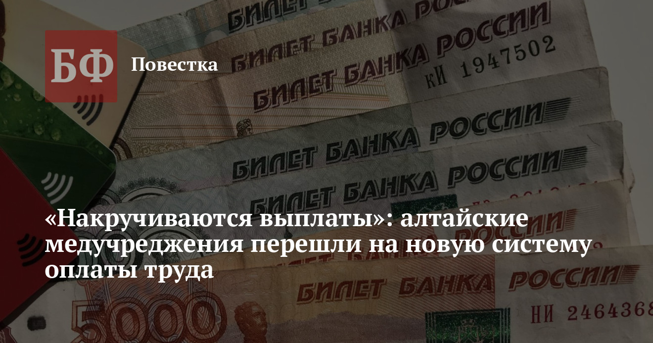 С 1 октября текущего года большая часть учреждений здравоохранения Алтайского края перешла на новую систему оплаты труда, а начался этот процесс в августе. Как сообщили ИА «Банкфакс» в Минздраве региона, изменения обусловлены исполнением поручения президента России. Предполагается, уровень зарплат останется прежним, а изменится только их структура в плане увеличения доли оклада, пояснила агентству председатель Алтайской краевой организации профсоюза работников здравоохранения РФ Ирина Смирнова. Раньше же оклад медиков не превышал 30% от зарплаты, а нижняя отметка была на уровне 17%.