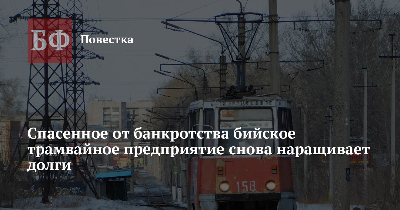 МУП «Бийскгортранс» фактически является преемником МУП «Трамвайное управление», которое отвечало за трамвайное сообщение в наукограде и стало банкротом в 2019 году в связи с долгами на сумму около 135,9 млн рублей. С того времени «Бийскгортранс» взял на себя функции трамвайного перевозчика, а «Трамвайное управление» меж тем вытягивали из долговой ямы. Большую часть требований кредиторов (98,65%) удалось удовлетворить. Причем, самая крупная сумма на погашение поступила из краевого бюджета — 117 млн рублей.