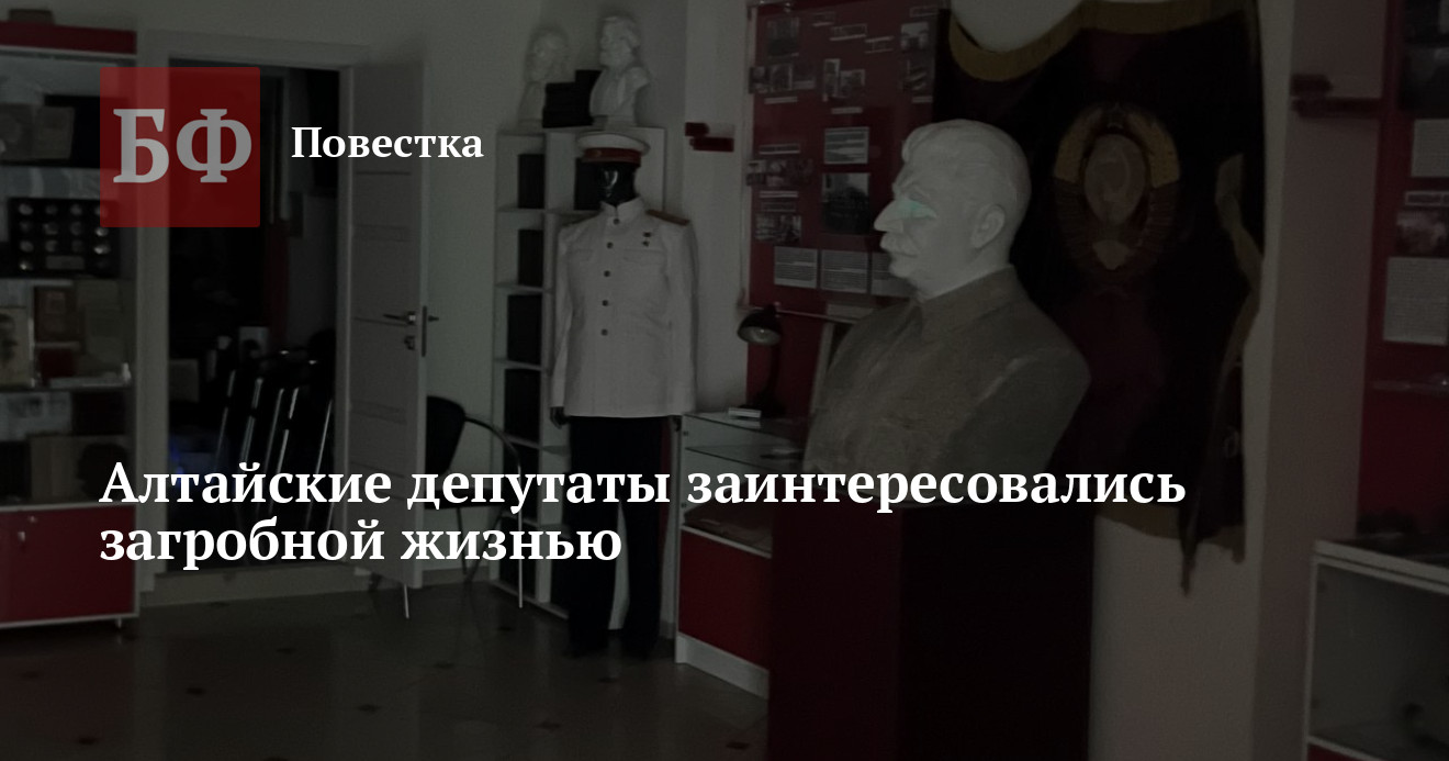 В соцсетях завирусился ролик, в котором барнаулец, случайно заехав на пустое кладбище, увидел на экране в автомобиле силуэты людей. После этого явлением неупокоенных душ заинтересовались депутаты Алтайского Заксобрания. Свою встречу с призраками опубликовал на своей странице «ВКонтакте» директор барнаульского зоопарка, единоросс Сергей Писарев. Также идею провести эксперимент с паранормальными явлениями при помощи автокамеры с датчиками в «Сталин-центре» высказал глава фракции «Коммунисты России» в АКЗС Сергей Матасов.