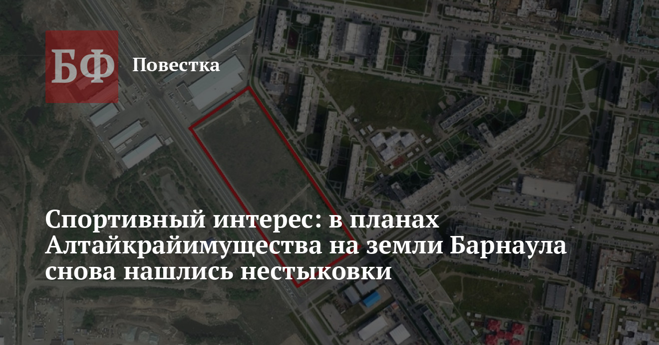 Примечательно, что в 2024 году в Барнауле получил распространение определенный сценарий земельных торгов, когда разыгрываются участки, изначально предназначающиеся для спортивных целей, но в планах Минспорта Алтайского края таких объектов нет. Похожая ситуация возникла вокруг территории площадью около 0,5 га на улице Сиреневой, 37 в Барнауле в марте 2024 года. В документах было указано, что земля сдается под строительство спортивного объекта на пять с половиной лет, хотя буквально через дорогу находится скандальный недостроенный спорткомплекс. В итоге участок отдали в аренду с торгов за 1,7 млн рублей ООО «Алтаймонолит». «Информацией о планах его использования не располагаем», — сообщало Минспорта в ответе на запрос «Банкфакса».