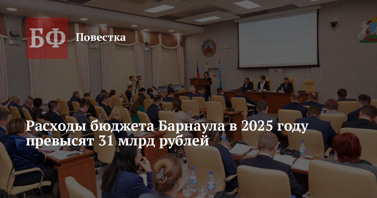 Депутаты Барнаульской гордумы приняли бюджет муниципалитета на 2025-й и плановый период 2026 — 2027 годов. Так, доходы бюджета в следующем году составят 30 млрд рублей, а расходы — 31,1 млрд рублей. При этом объем финансовой поддержки из вышестоящей казны ожидается в размере 14,6 млрд. Планируется, что более 60% средств будут направлены на развитие социальной сферы города: образование, культуру, спорт и др.