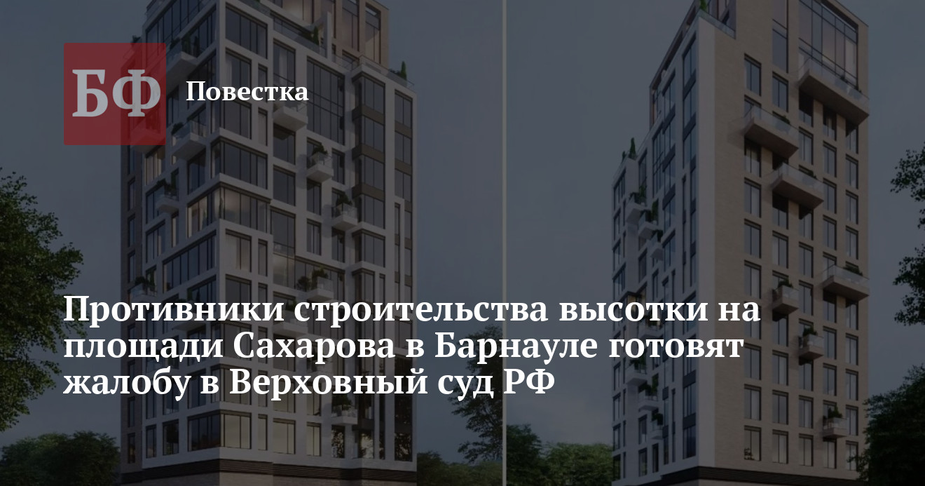 Жители двух пятиэтажек на улице Молодежной № 21 и № 23 в Барнауле продолжают судебные тяжбы против строительства 15-этажной высотки на месте снесенных холмов на площади Сахарова. Представитель инициативной группы Галина Абрамова сообщила «Банкфаксу», что на данном этапе горожане готовят жалобу в Верховный суд РФ. В предыдущих инстанциях они проиграли. Из решений судов следует, что высотку хотят возвести в очень стесненных условиях — дом, в частности, не располагает достаточным количеством земли, чтобы обеспечить жителей парковочными местами, существуют проблемы с созданием условий для тушения пожаров. Чтобы преодолеть некоторые препятствия администрация города разрешила использовать для нужд многоквартирника земли общего пользования.