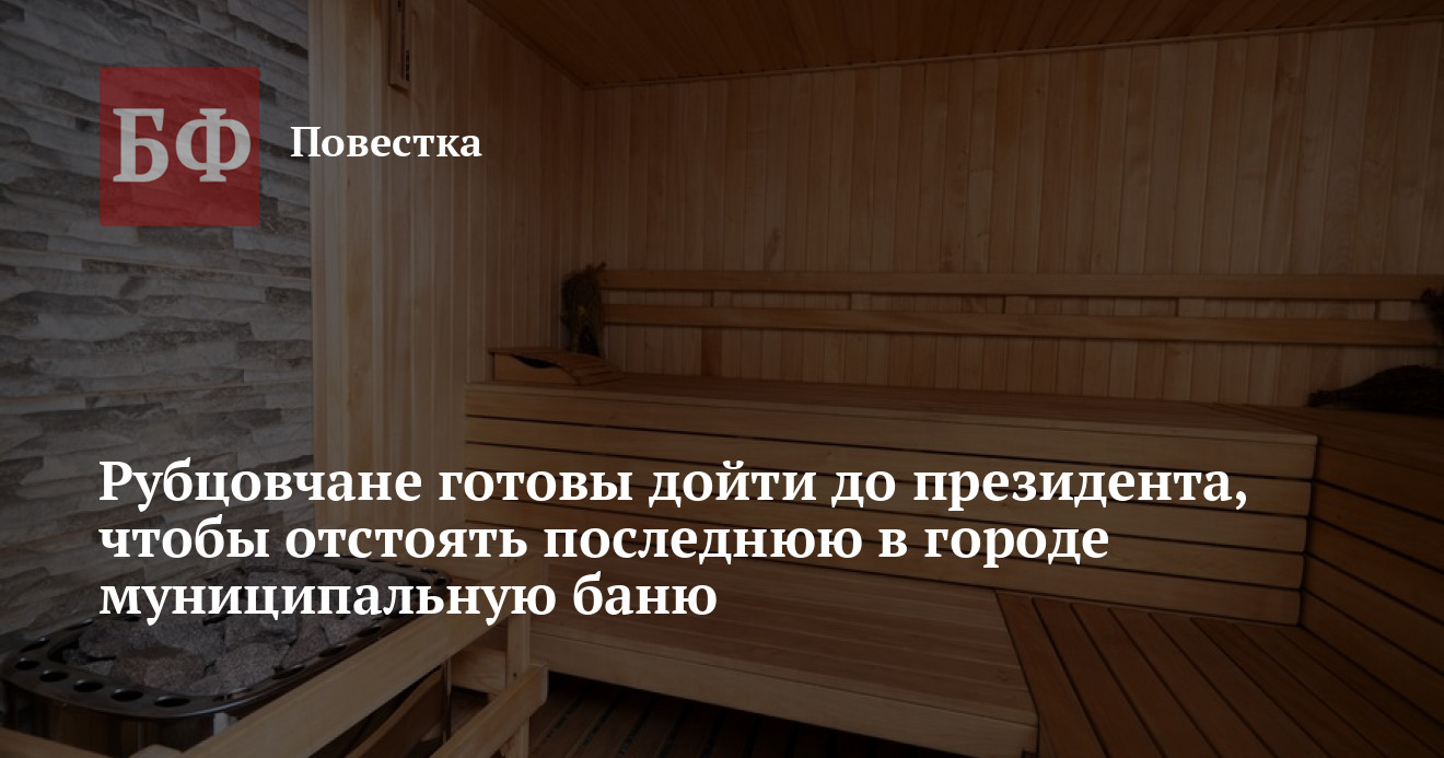 С мая текущего года в Рубцовске не работает единственная в городе муниципальная общественная баня — раньше их было пять. Инициативная группа горожан пытается выяснить, когда объект снова запустят, но им называют сроки, которые постоянно сдвигаются, в связи с чем рубцовчане намерены обратиться к президенту России Владимиру Путину. Наряду с этим власти предприняли попытку отдать в аренду баню на один год с правом дальнейшего выкупа и при условии сохранения профиля работы. Прокуратура Рубцовска дала отрицательный отзыв на данную инициативу, а депутаты горсовета отказались принимать соответствующий нормативно-правовой акт. «Банкфакс» пообщался с участниками «банной» истории и изучил связанные с ней документы.