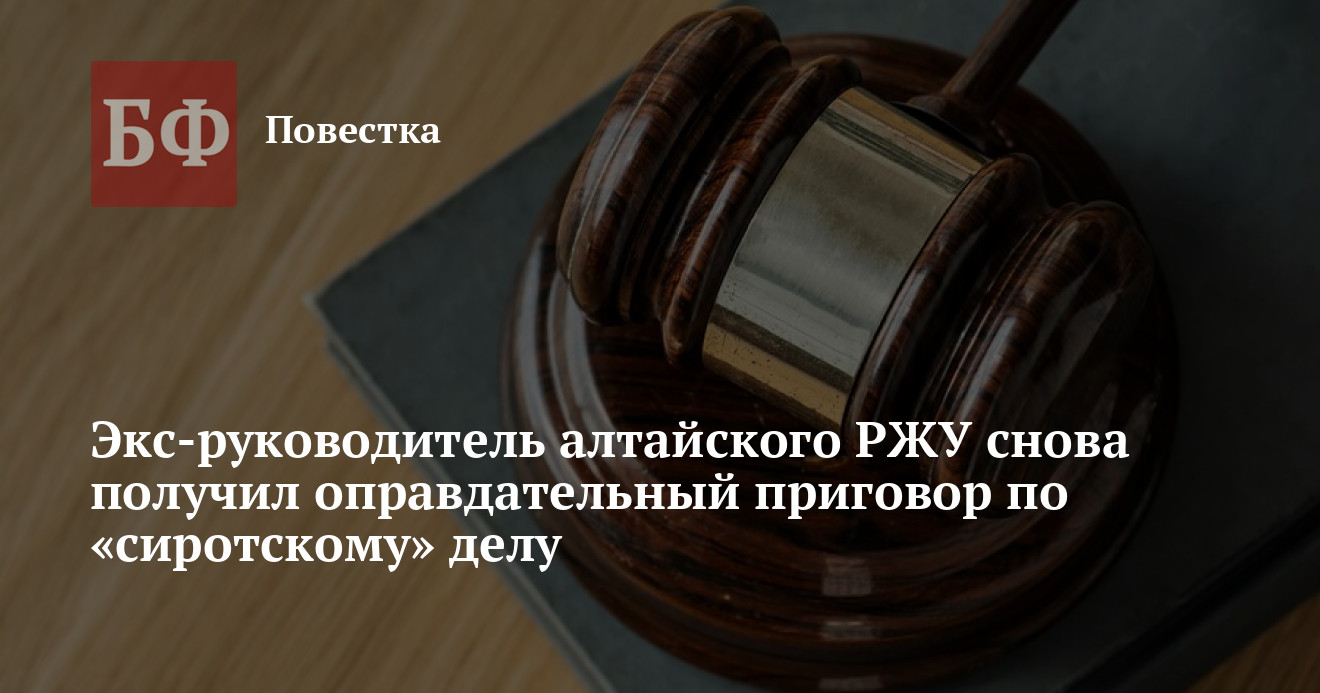 Железнодорожный районный суд Барнаула вновь вынес оправдательный приговор по делу бывшего руководителя «Регионального жилищного управления» (РЖУ) Евгения Котугина о непредоставлении жилья сиротам. Согласно информации из картотеки суда, в деле Котугина отсутствует состав преступления.