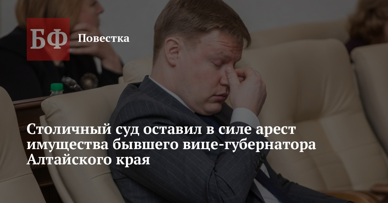 Мосгорсуд оставил без изменения решение первой инстанции о наложении ареста на имущество бывшего зампреда правительства Алтайского края Ивана Кибардина. Соответствующая информация была размещена в судебной картотеке столичных судов.