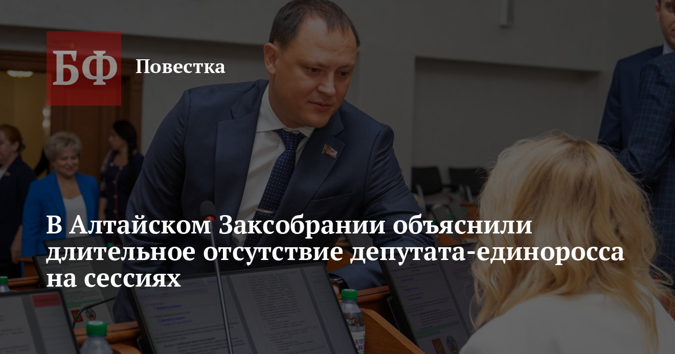 Заместитель председателя комитета по строительству, ЖКХ, транспорту и связи Алтайского Заксобрания, депутат фракции «Единая России» Николай Данилин в течение шести месяцев подряд не появляется в стенах регионального парламента. Данная информация подтверждается протоколами голосований с сессий АКЗС, опубликованных на сайте законодательного органа. Столь длительное отсутствие народного избранника могло бы стать основанием для лишения его депутатских полномочий. Однако в аппарате АКЗС в ответ на запрос ИА «Банкфакс» заявили, что Данилин не посещает сессии по уважительной причине. Тем временем источники редакции утверждают, что все эти месяцы депутат может находиться заграницей в связи с интересом к нему силовых структур.
