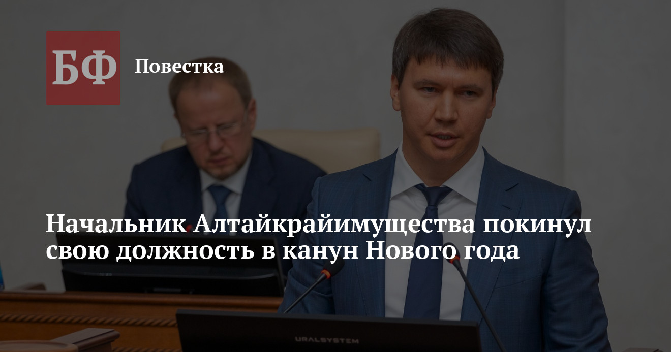 Руководитель управления имущественных отношений Алтайского края Александр Теплов оставил свою должность. Данную информацию ИА «Банкфакс» подтвердили в пресс-службе ведомства. Как уточнили в Алтайкрайимуществе, исполняющим обязанности начальника управления назначен его заместитель Алексей Аленников.
