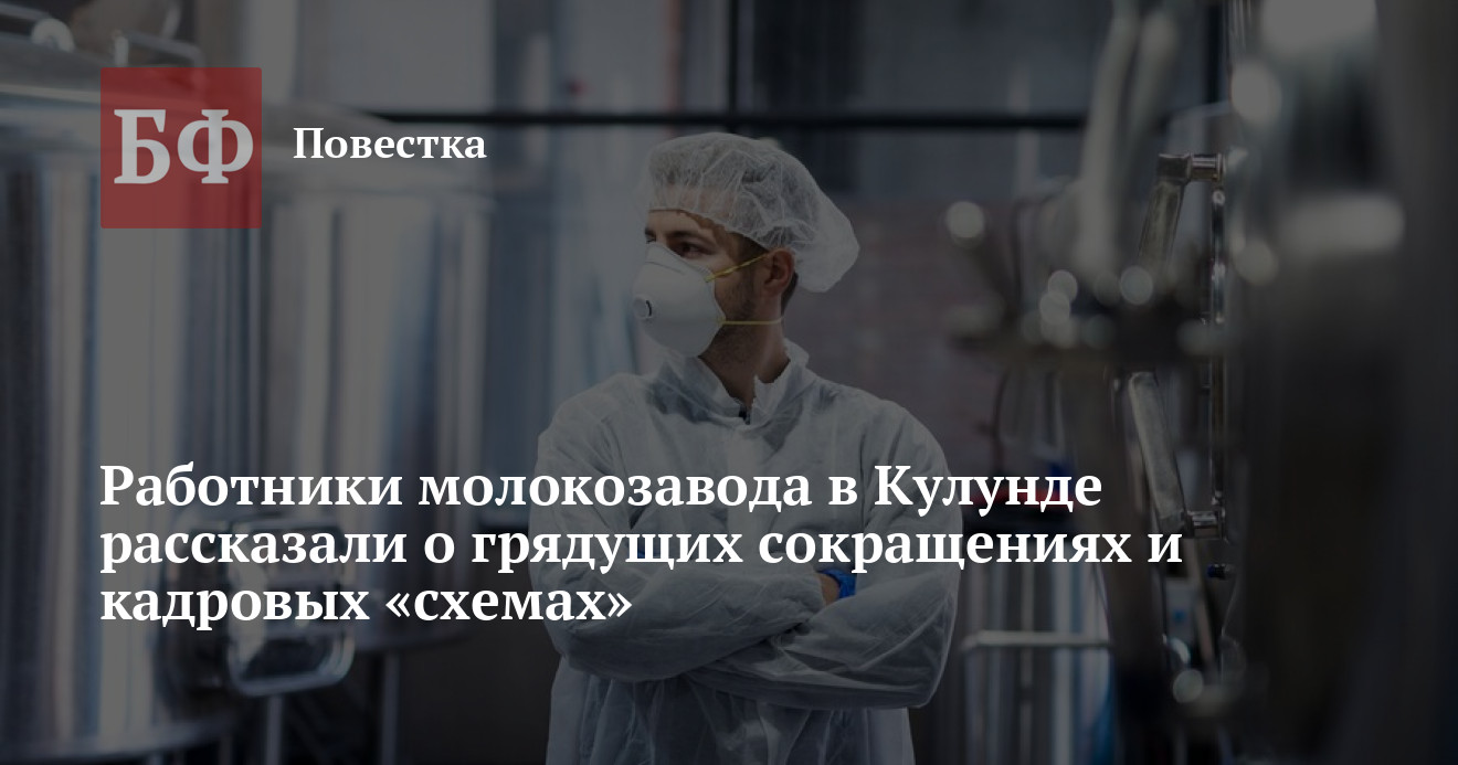 Как объяснила Мария Шаповаленко, помимо завода в Кулунде, у холдинга «Столица молока» есть предприятия в других муниципалитетах, в том числе в селе Волчиха, куда также направляют молоко для переработки и производства молочной продукции, в частности, сыров. По ее словам, руководство якобы перевело 60 работников волчихинского подразделения, в штат завода «Кулундаконсервмолоко», из-за чего предстоящее увольнение формально не является массовым сокращением, а оптимизацией работы предприятия. «Мы не можем понять, почему они его [штат] к нам приплюсовывают. Если они его к нам приплюсовывают, то и там тоже должно быть сокращение. Если у нас сократили из каждого цеха, то и тут [в волчихинском подразделении] должны сократить», — отметила собеседница. Она добавила, что и сама попадает под сокращение в качестве рабочей единицы.