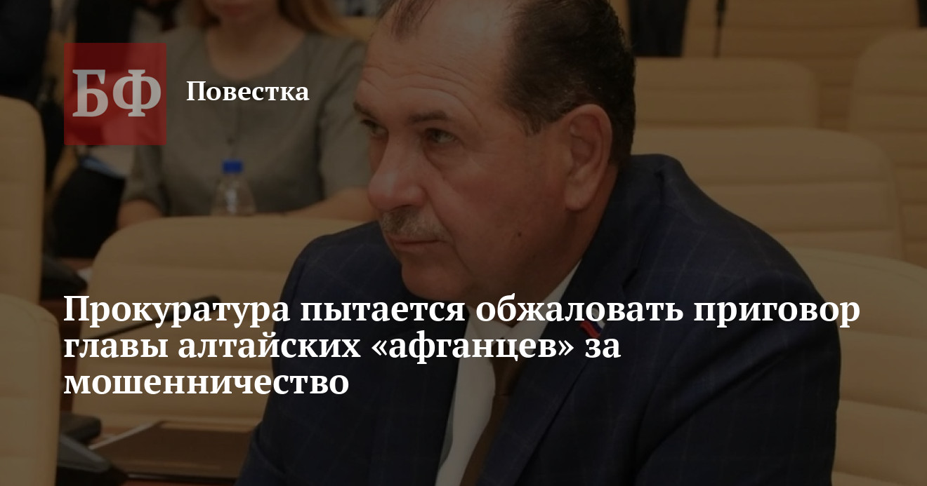 Стороны обвинения и защиты обжаловали условный срок председателя Алтайского отделения Российского Союза ветеранов Афганистана и экс-депутата гордумы Барнаула Сергея Завалихина, а также его сообщника по делу о мошенничестве при заключении контрактов с медучреждениями на аренду и стирку белья. Информация об этом размещена в картотеке Центрального районного суда Барнаула.