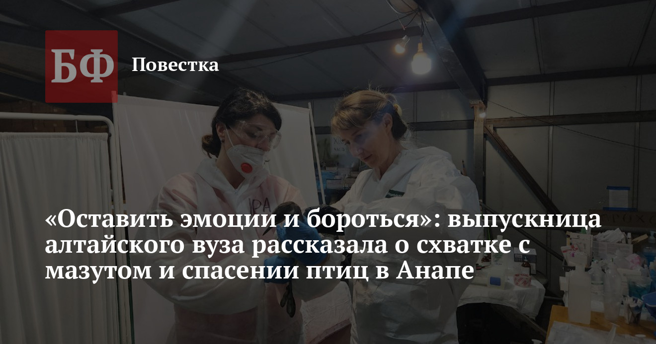 В середине декабря в Керченском проливе потерпели крушение два нефтяных танкера. В результате происшествия в Черное море попали тонны мазута, которые вымываются на берега российских курортов, в том числе Анапы, Севастополя, Краснодарского края и Крыма. В очистке берегов и помощи пострадавшим животным участвуют волонтеры со всех уголков страны. Одним из добровольцев стала маркетолог из Санкт-Петербурга, выпускница Алтайского госуниверситета Ирина Елкина, которая в начале января уехала из Санкт-Петербурга в Анапу, где на базе оперативного штаба оказывала первую помощь птицам. О своей волонтерской работе она рассказала «Банкфаксу».