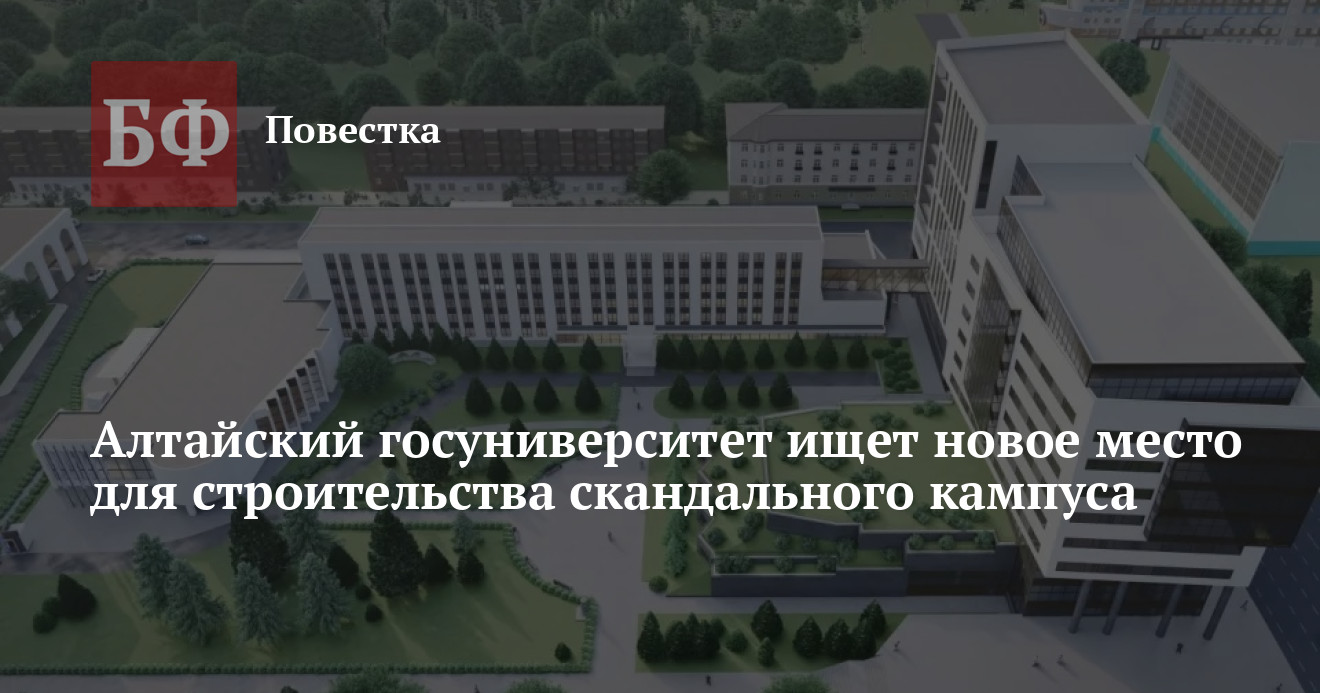 По словам Сергея Бочарова, недавно у него состоялась встреча с главой Барнаула Вячеславом Франком при непосредственном участии губернатора Виктора Томенко. В ходе общения была затронута тема строительства нового корпуса АлтГУ. «Виктор Петрович Томенко дал поручение по поиску нового участка для этих целей, поскольку создание нового кампуса на территории Барнаула отвечает интересам развития региона», — сообщил ректор. Уточнить, какой участок у вуза уже есть на примете, он не смог, пояснив, что «лучше не забегать вперед, потому что это очень сложная история, которая требует множества согласований и учета интересов многих сторон».