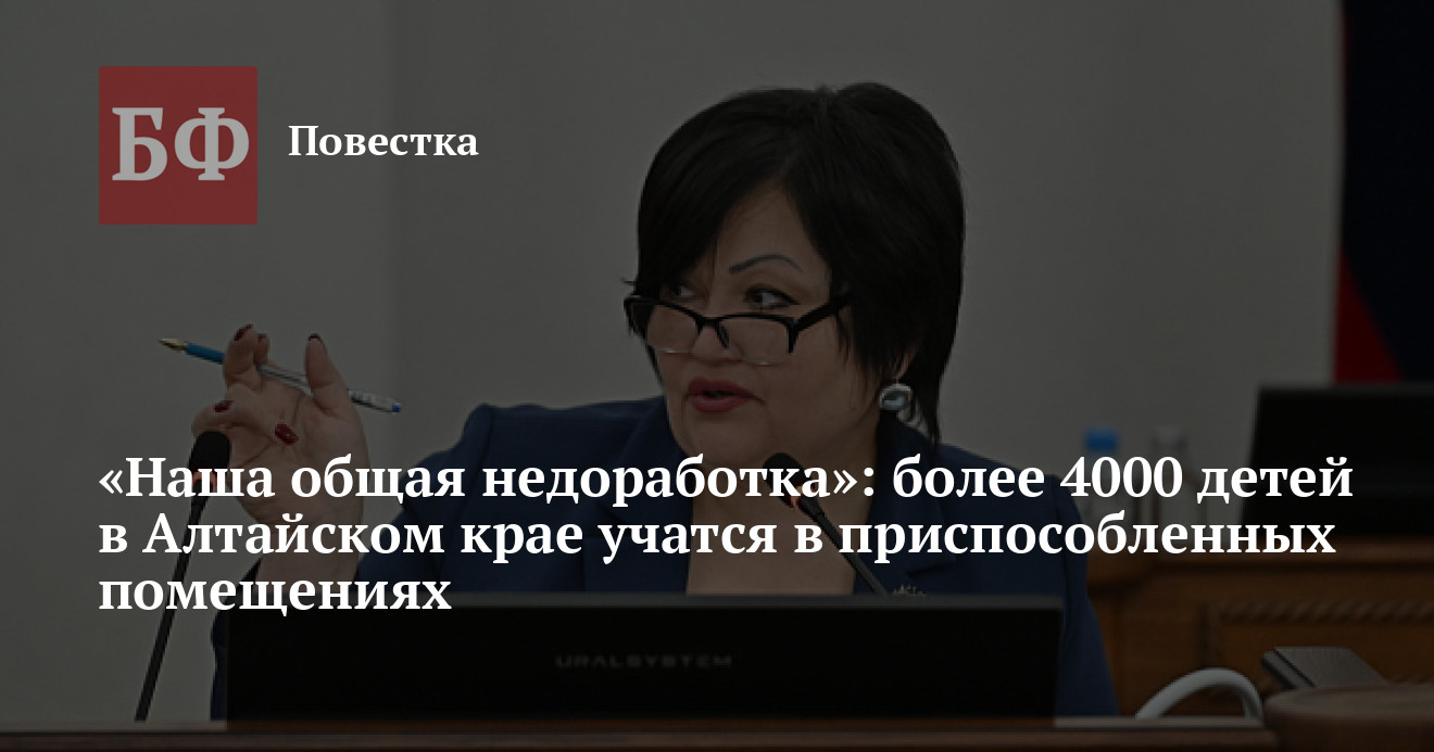 29 января в Алтайском Заксобрании состоялся правительственный час с участием главы регионального Минобрнауки Светланы Говорухиной. Депутаты задали чиновнице около 40 вопросов, в том числе по поводу обучения детей в приспособленных помещениях, что чаще всего бывает при признании зданий школ аварийными. Министр доложила, что сейчас в Алтайском крае более 4000 детей из 20 школ учатся в приспособленных помещениях.
