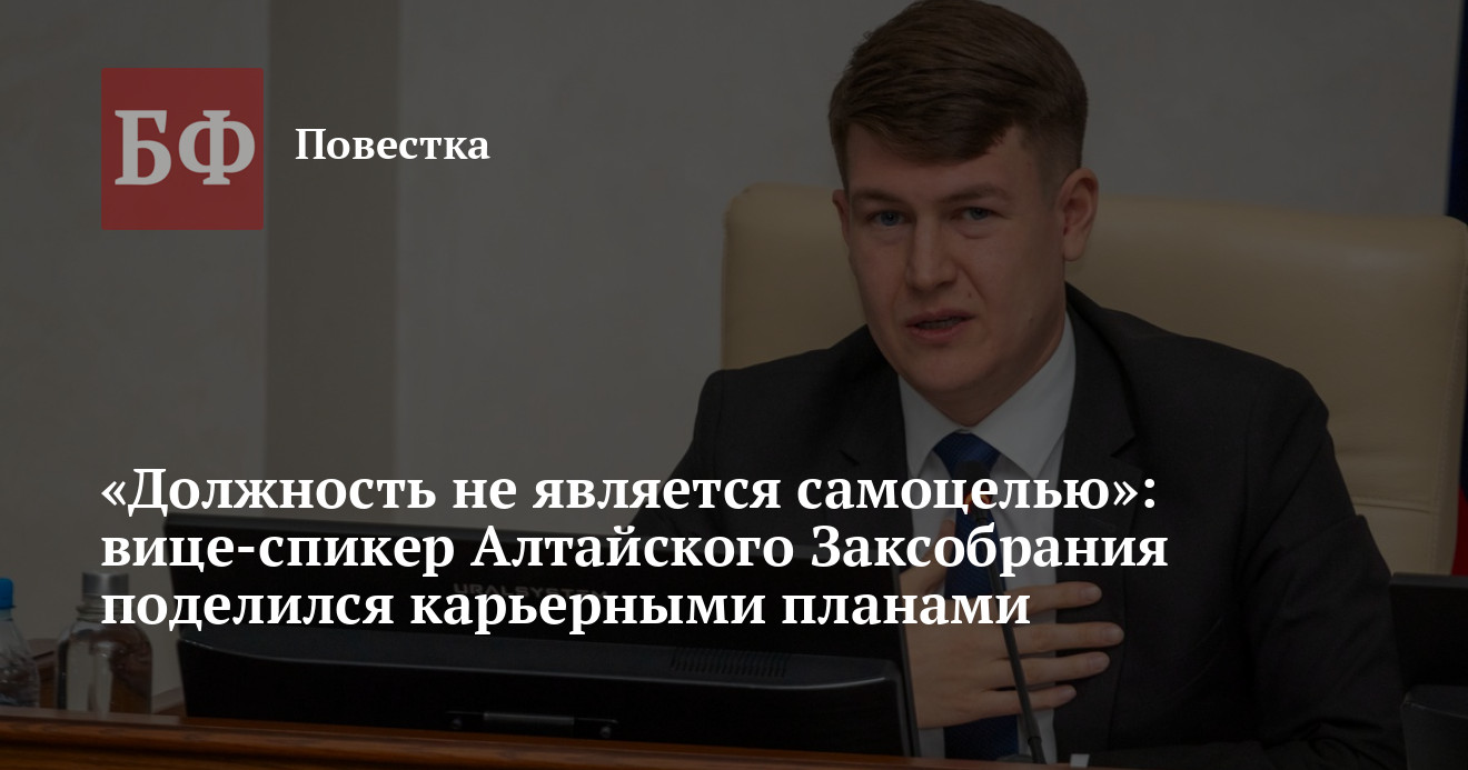 В ходе парламентского форума АКЗС редакция поинтересовалась у Дениса Голобородько, какие варианты развития политической карьеры он рассматривает в связи с грядущим выборным циклом. Общественностью неоднократно высказывались мнения о том, что именно молодой и амбициозный единоросс является основным кандидатом от партии на мандат депутата Госдумы по Бийскому округу, в случае если в 2025 году состоятся довыборы. При этом представители другой точки зрения полагают, что Голобородько не против «унаследовать» должность спикера АКЗС в новом созыве и занять место своего старшего товарища и наставника Александра Романенко. Сам спикер АКЗС ранее заявил «Банкфаксу», что у него особых эмоций эта полемика не вызывает, и он готов предоставить возможность молодежи «развернуться». При этом он дал понять, что уступать кресло пока не намерен.