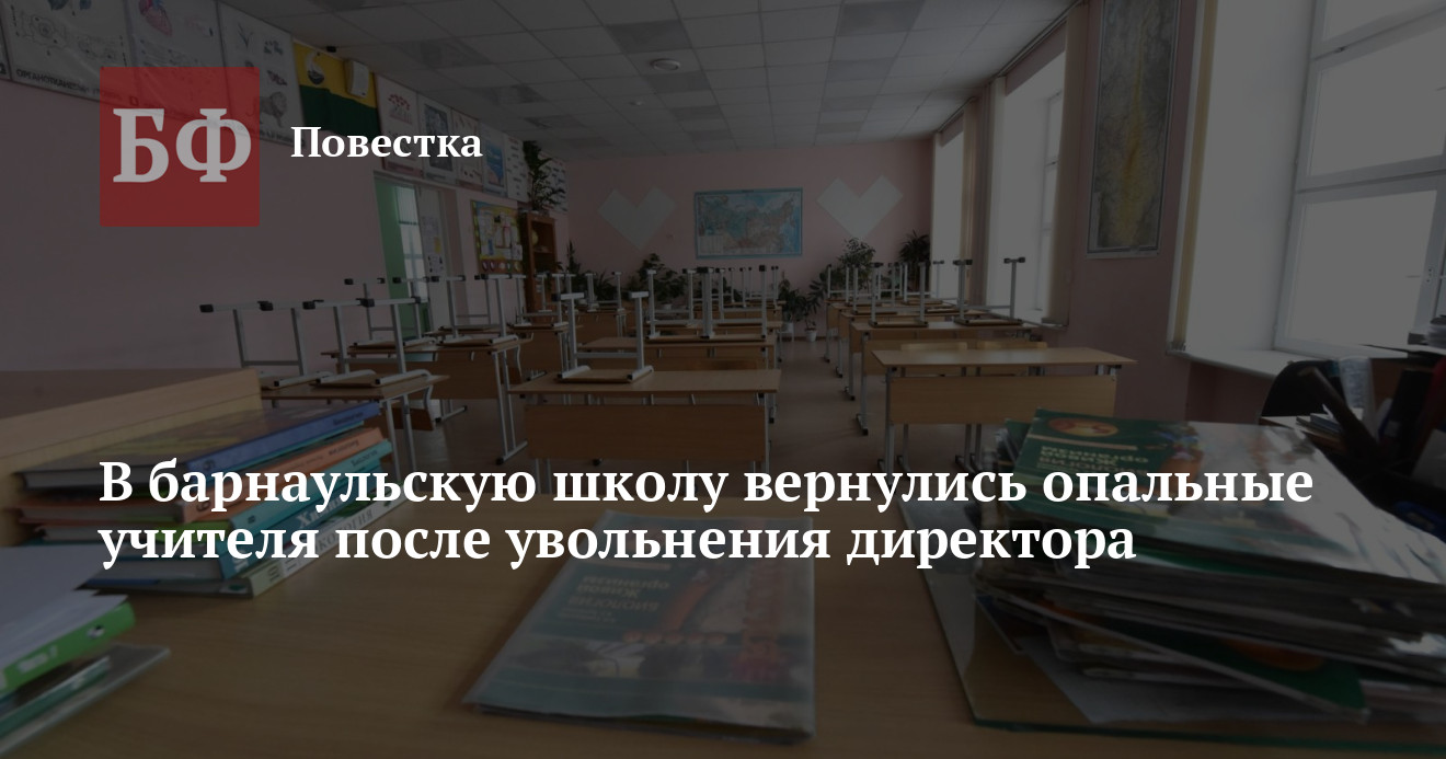 Людмила Дружинина оставила должность директора школы № 49 Барнаула, а педагоги, которые связывали свое увольнение с ее личностью, вернулись в учебное заведение. Это следует из ответа городского комитета по образованию на запрос ИА «Банкфакс» и пояснений сотрудников.