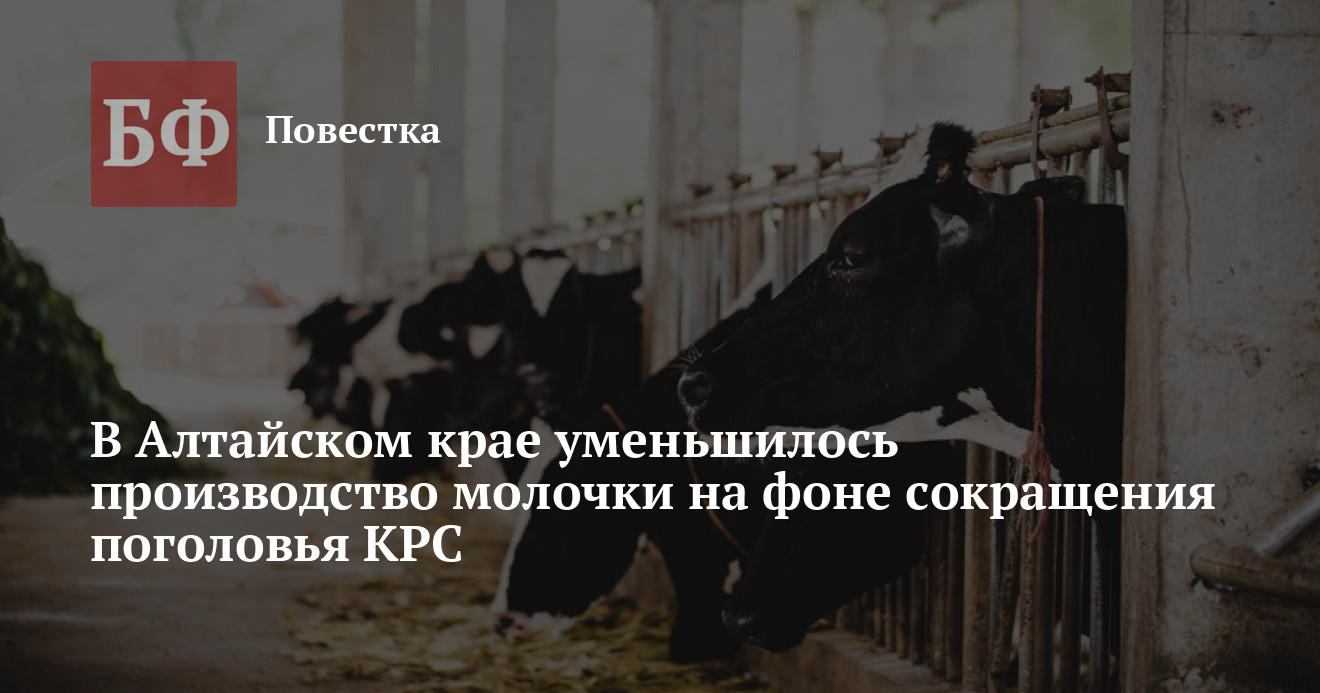 В 2024 году в хозяйствах Алтайского края на 6,4% сократилось поголовье крупного рогатого скота в сравнении с предыдущим годом — минус 53,3 тысячи голов. Об этом сообщил Алтайкрайстат в докладе о социально-экономическом положении региона по итогам минувшего года. Одновременно с этим уменьшилось производство молока, сухих сливок, сливочного масла. Самое значительное падение наблюдается по первым трем позициям — на 28,6%.