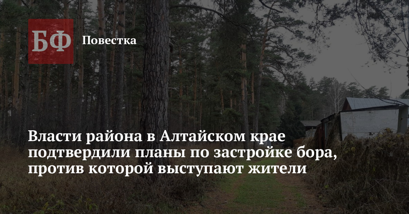 Администрация Первомайского района ответила на обращение жителей села Рассказиха по поводу уничтожения бора в черте населенного пункта. Чиновники заявили, что лес с 2014 года находится в зоне жилой застройки в соответствии с Генеральным планом сельсовета. По утверждениям рассказихинцев, данный документ приняли без публичных слушаний.