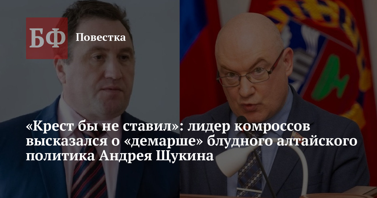 Бывший алтайский политик Андрей Щукин, который в последнее время возглавлял новосибирское областное отделение партии «Коммунисты России», подал заявку на участие в праймериз «Единой России». Как оказалось, в стане комроссов эту новость восприняли спокойно. Председатель КПКР, депутат Алтайского Заксобрания Сергей Малинкович в беседе с корреспондентом ИА «Банкфакс» заявил, что говорить о разрыве комроссов с Щукиным пока рано, поскольку он не заявлял о желании выйти из партии.