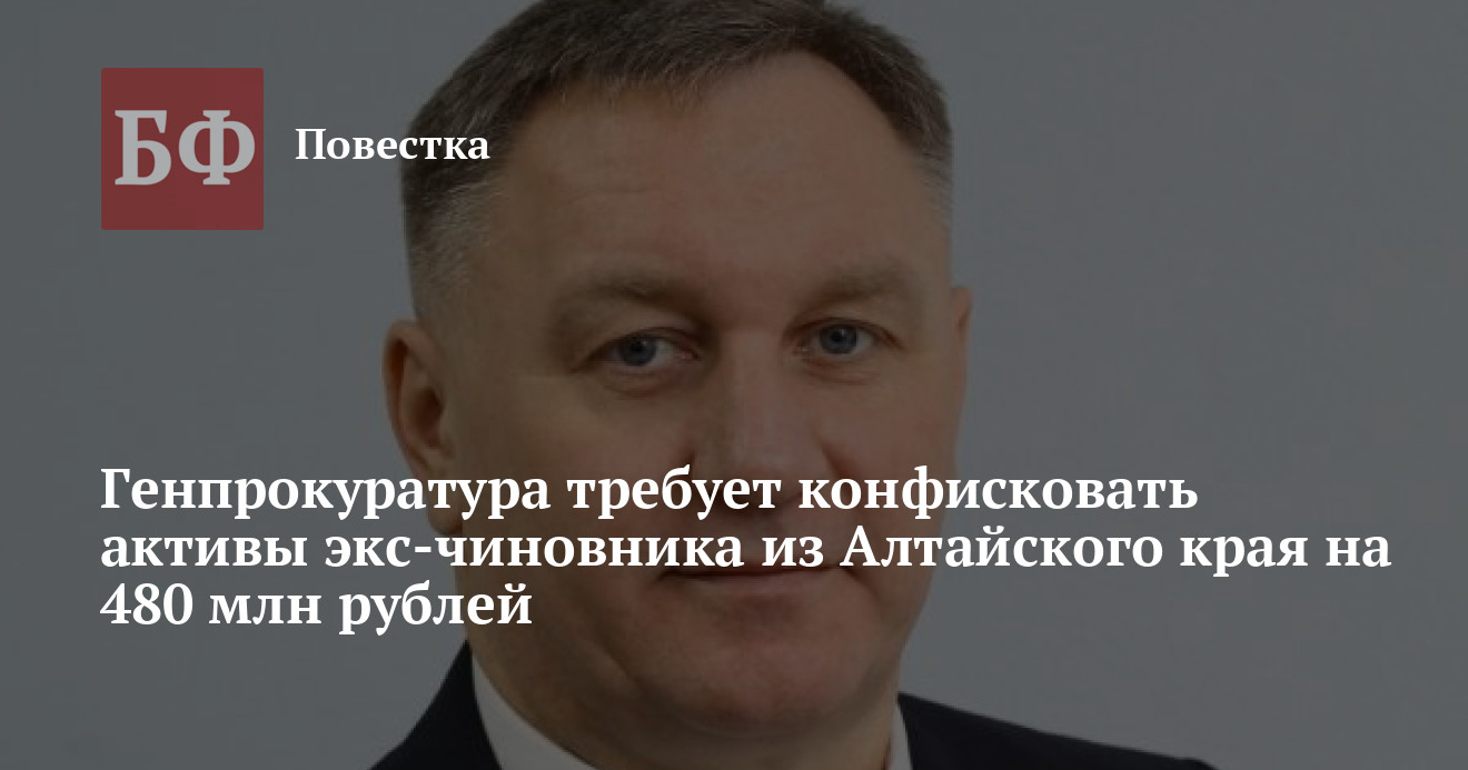 Имущество и доходы на сумму свыше 480 млн рублей бывшего главы Южно-Сибирского межрегионального управления Росприроднадзора, уроженца Бийска Андрея Фролова, попавшего под следствие за превышение полномочий и воспрепятствование законному предпринимательству, потребовала конфисковать Генпрокуратура РФ. Как сообщила пресс-служба ведомства 2 апреля, они были приобретены на неподтвержденные доходы. Дело Фролова связано с разбирательством в отношении бывшего начальника ФГКУ «Специальное управление № 36 МЧС России» Виктора Великодного, которого вместе с рядом фигурантов судят за присвоение и растрату более 700 млн рублей.