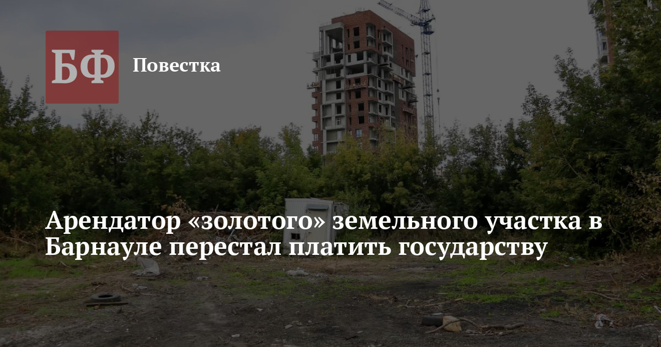 МТУ Росимущества в Алтайском крае и Республике Алтай обратилось в суд с иском к Павлу Стукошину, который арендует у государства по заоблачной цене земельный участок в районе предполагаемого Обского бульвара в Барнауле. Как сообщили ИА «Банкфакс» в ведомстве в ответе на запрос, арендатор надела задолжал ренту на сумму более 15 млн рублей. Источник агентства полагает, что Стукошин сейчас ищет способ расторгнуть договор с Росимуществом из-за невозможности заработать на переуступке земли.