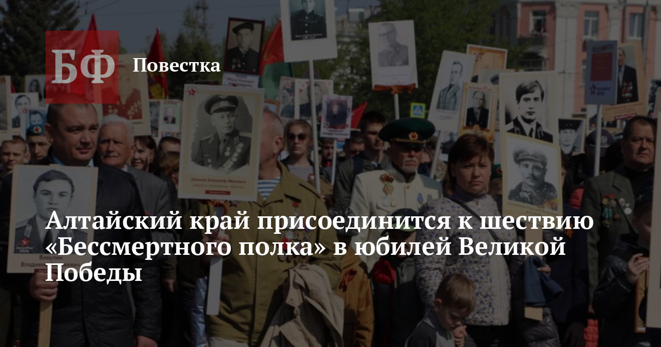 Власти Алтайского края ведут активную подготовку к проведению акции «Бессмертный полк». Как сообщил в своем Telegram-канале губернатор региона Виктор Томенко, в год 80-летия Победы в Великой Отечественной войне принято решение вновь провести эту любимую многими акцию, в том числе и в формате шествия. До этого в течение двух лет от проведения отказывались из соображений общественной безопасности.