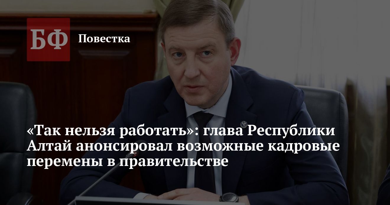 О грядущих переменах в работе исполнительного органа глава Республики Алтай предупредил подчиненных в ходе правительственного заседания 22 апреля. По словам Турчака, в случае одобрения изменений в Конституцию региона, депутатов обязуют согласовывать кандидатуры всех министров. «Это накладывает дополнительную ответственность и на вас, и на депутатов. Утверждая ваши кандидатуры, они будут солидарно разделять все ваши успехи и недоработки», — обратился к членам правительства глава региона.