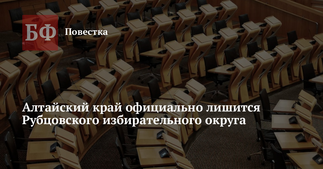 Напомним, обсуждение возможной потери Алтайским краем одного из округов ведутся уже несколько месяцев. Однако официально об этом объявили только сейчас. Теперь проект решения будет вынесен на рассмотрение в Госдуму. Добавим, что в настоящее время Барнаульский одномандатный округ в ГД представляет Даниил Бессарабов («Единая Россия»), Рубцовский — Мария Прусакова (КПРФ), Славгородский — Иван Лоор («Единая Россия»), а мандат Бийского округа остается вакантным.