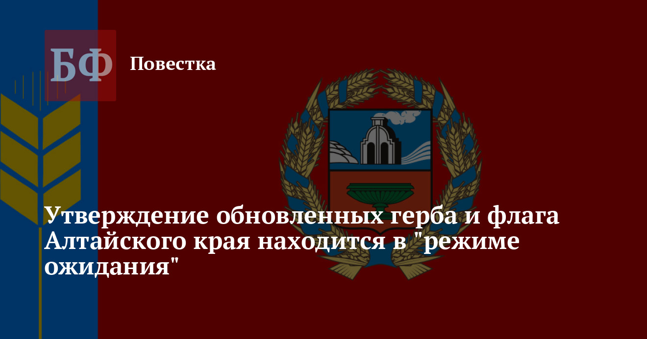 Как напомнили в правительстве, ранее Геральдический совет при президенте РФ сделал замечания относительно официальной символики некоторых российских субъектов, в том числе Алтайского края. В связи с этим специалисты по-прежнему прорабатывают проекты герба и флага региона. Эскизы официальной символики ранее уже представил художник-геральдист Александр Грефенштейн. Отмечается, что он является автором и соавтором символики Свердловской, Ленинградской, Рязанской, Тюменской областей, ЯНАО, Дагестана, Чечни, разработал более 200 гербов муниципальных образований, внесенных в Государственный геральдический регистр.