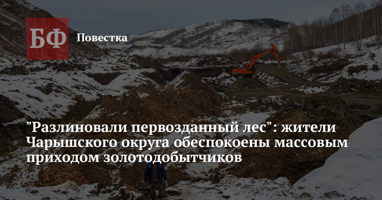 Жительница Чарышского округа Екатерина Верюгина рассказала «Банкфаксу», что семь компаний получили лицензии на разведку и добычу россыпного и рудного золота в муниципалитете. По информации собеседницы, в водосбор реки Чарыш (бассейны рек Коргон и Кумир) и в бассейне реки Бащелак зашли ООО «Ануй», «Сибраш», «Красная руда», «ЗДП АС «Горняк», «Ора Монта», «Геотехмайнинг», «ЗРК «Старатель».