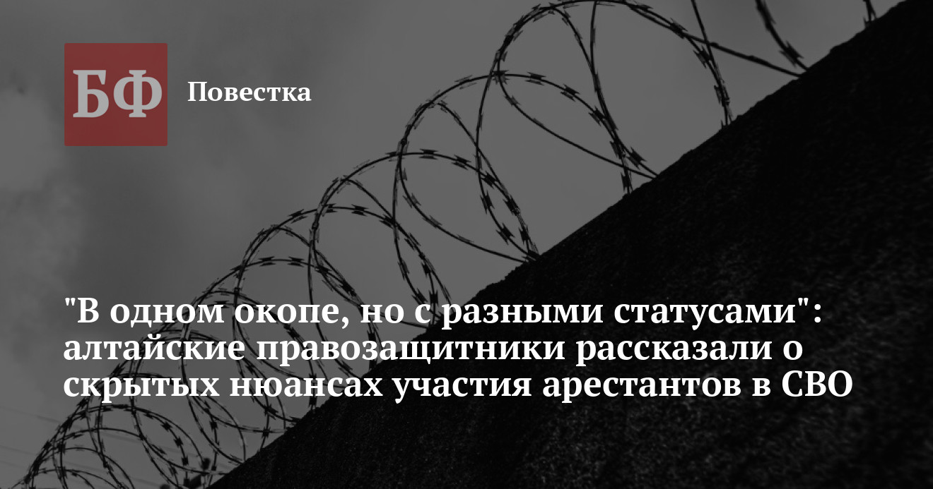 Алтайский омбудсмен в беседе с редакцией коснулся и мотивов, которые побуждают заключенных отправиться на фронт. «Разумеется, один из важных мотивов — желание уйти от уголовной ответственности, поскольку решение по этим гражданам после участия в боевых действиях может быть вплоть до снятия судимости. Кроме того, в местах лишения свободы нередко находятся мужчины, которые ранее служили, поэтому решают возобновить службу и по зову сердца подписывают контракт. Среди них могут быть даже те, у кого срок наказания почти истек или близка дата условно-досрочного освобождения. Тем не менее они отправляются на спецоперацию», — рассказал правозащитник. При этом по словам Антона Васильева, условия службы для осужденных сильно отличаются от остальных категорий бойцов.