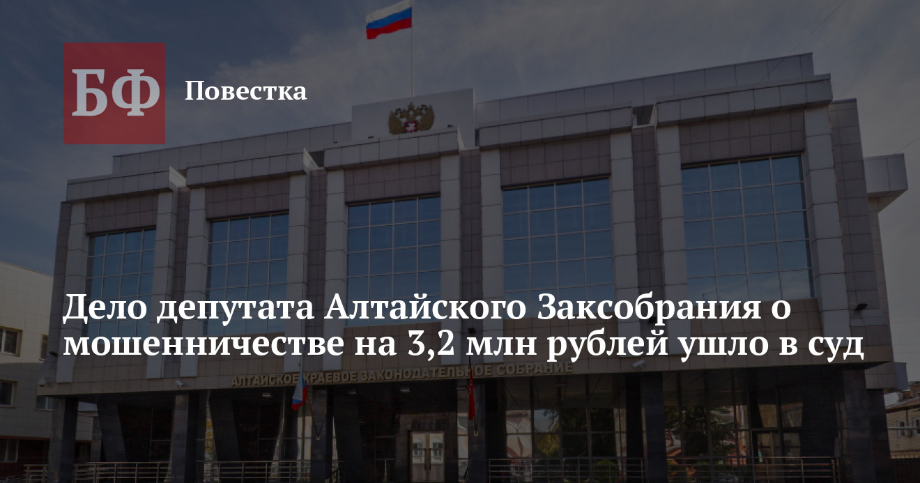Преступление выявили оперативники УФСБ России по Алтайскому краю. Второй отдел по расследованию особо важных дел регионального СУ СКР завершил расследование уголовного дела в отношении парламентария. Он обвиняется в совершении преступления, предусмотренного ч. 4 ст. 159 УК РФ (мошенничество, совершенное в особо крупном размере). Уголовное дело с утвержденным обвинительным заключением направлено в суд для вынесения приговора. В ведомстве подчеркнули, что фигурант в полном объем возместил ущерб в ходе предварительного разбирательства.