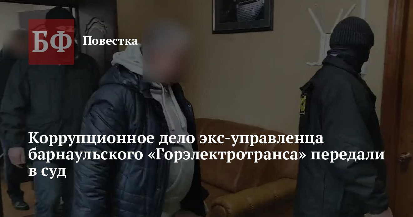 Уголовное дело в отношении бывшего главного инженера МУП «Горэлектротранс» Александра Возного передано в суд для вынесения приговора. Как сообщили пресс-службы СУ СКР и прокуратуры по Алтайскому краю 11 июня, он обвиняется в получении взяток на 200 тысяч рублей и превышении должностных полномочий при проведении ремонтных работ.