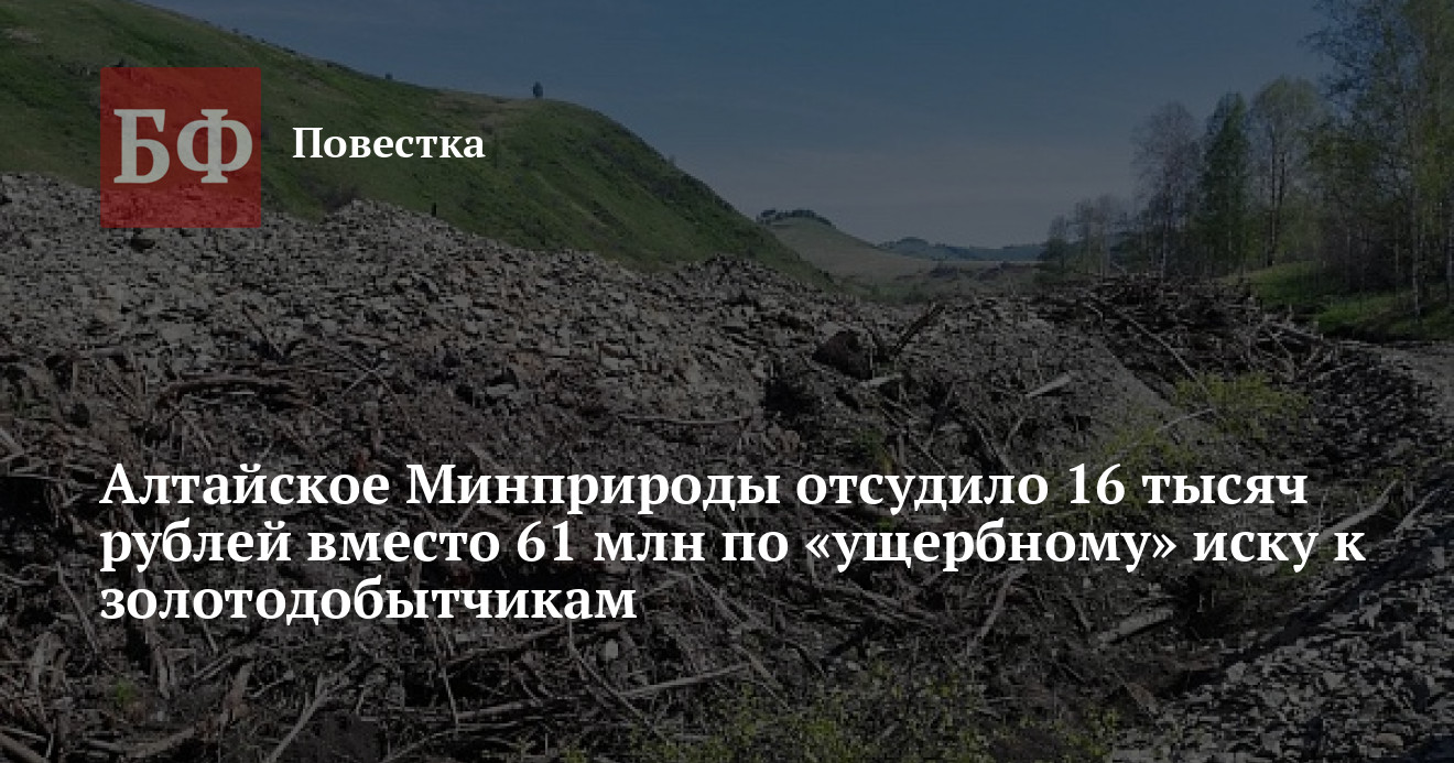 Арбитражный суд Алтайского края завершил рассмотрение дела по иску регионального Минприроды к ООО «Европейско-Азиатская горнорудная компания» (ЕАГК) и ООО «Антарес». Ведомство пыталось добиться от обеих фирм возмещения ущерба, нанесенного лесам Алтайского района, на сумму свыше 61,3 млн рублей, но смогло доказать наличие ущерба только на сумму 16,88 тысяч рублей, следует из материалов судебной картотеки.