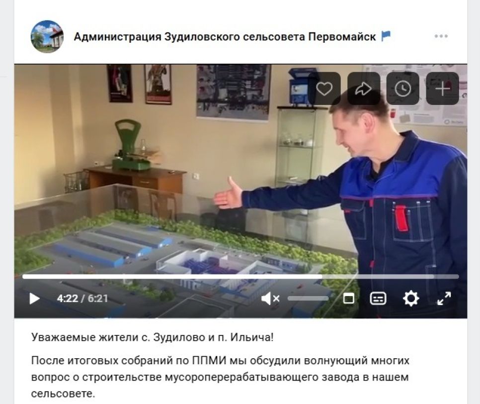Однако источники «Банкфакса» утверждают, что власти уже сделали выбор в пользу упомянутого участка. Это отчасти подтверждается сообщением, опубликованным администрацией Зудиловского сельсовета 17 июля на своей странице в социальной сети «ВКонтакте». «Уважаемые жители села Зудилово и поселка Ильича! После итоговых собраний по ППМИ (проект поддержки местных инициатив – прим. ред. БФ) мы обсудили волнующий многих вопрос о строительстве мусороперерабатывающего завода в нашем сельсовете. Многие боятся, что это создаст новую свалку, но современный завод - это не свалка и не грязное производство. Он решит важную экологическую проблему и повысит нашу безопасность. Существующий полигон вызывает тревогу из-за растущих гор мусора. Будущее производство планируется разместить дальше от действующего полигона, что снизит негативное воздействие на окружающую среду. Для лучшего понимания предлагаем посмотреть видео о работе современного перерабатывающего завода», – говорится в сообщении.