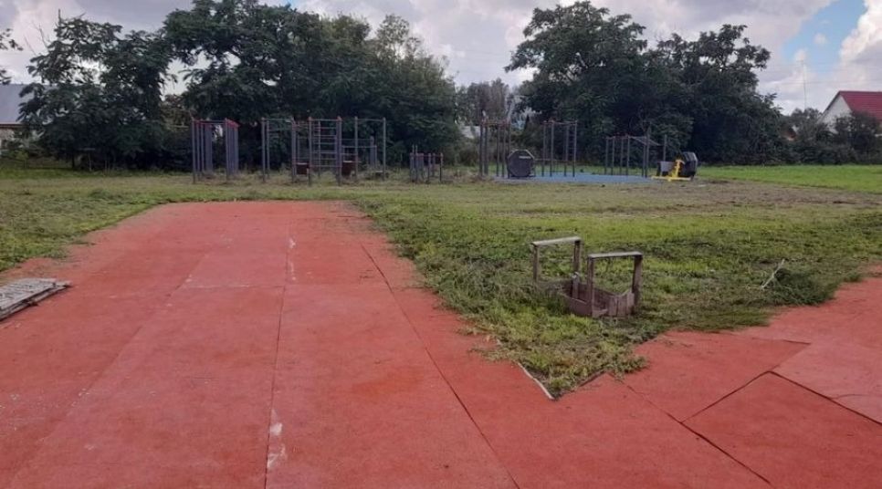 Главные претензии по волейбольным и баскетбольным площадкам также касались укладки покрытия – приклеенная резина вздыбилась, края листов закрутились вверх. По словам Юрия Ильина, подрядчик перекладывал покрытие лишь на волейбольной площадке, и теперь он не берется судить о качестве. Вместе с тем Ильин отмечал, что на баскетбольной площадке не установили щиты. От другого жителя села он слышал, что щиты точно привозили в составе комплекта. Последняя локация площадки – участок с уличными тренажерами, если верить Юрию Ильину, тоже осталась «нетронутой». Основание на ней не сделали.