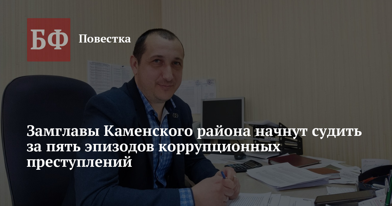 Следком завершил расследование уголовного дела в отношении заместителя главы Каменского района, председателя комитета по жилищно-коммунальному хозяйству, строительству и архитектуре Владимира Баранова. Он обвиняется в превышении должностных полномочий при благоустройстве общественных пространств по нацпроекту. Как сообщили в СУ СКР по Алтайскому краю, материалы дела ушли в суд.