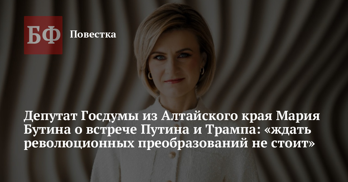 Саммит президентов России и США на Аляске может оказаться основополагающим и знаковым в отношениях между странами, но не стоит от него ожидать чего-то революционного. Такое мнение в беседе с «Банкфаксом» высказала депутат Госдумы, уроженка Алтайского края Мария Бутина.