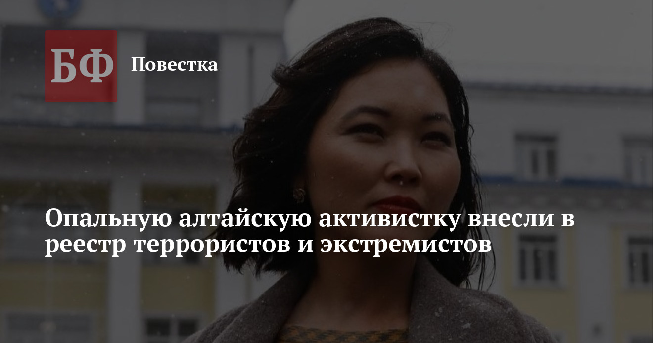 Оппозиционерку из Республики Алтай Аруну Арна внесли в реестр террористов и экстремистов. Сведения об этом опубликованы на сайте Росфинмониторинга.