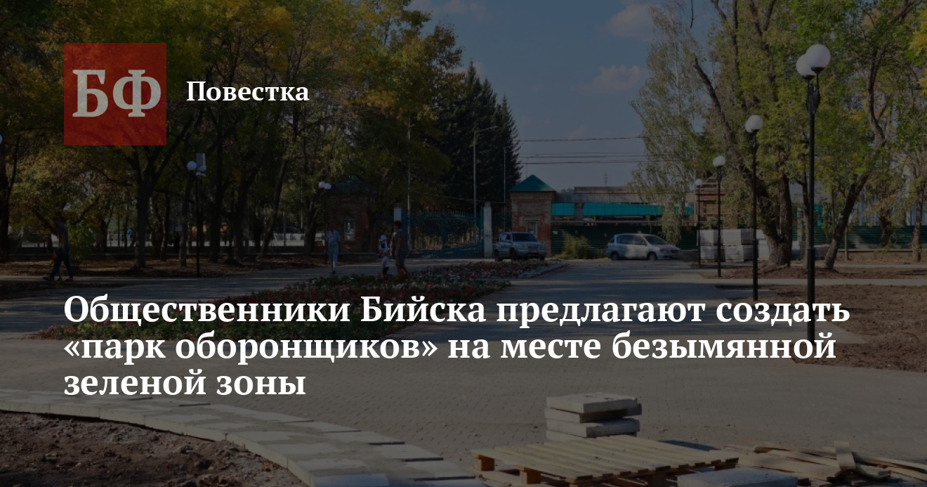 Ветераны бийских оборонных предприятий и их сторонники предлагают создать парк, посвященный истории данных промышленных объектов. Возглавляет инициативную группу директор городского Дома культуры (ГДК), депутат Бийской гордумы Инна Рязанова. Она рассказала «Банкфаксу», что так называемый «парк оборонщиков» хотят разместить на месте зеленой зоны, у которой сейчас нет своего имени - жители наукограда называют ее «парк за ГДК».