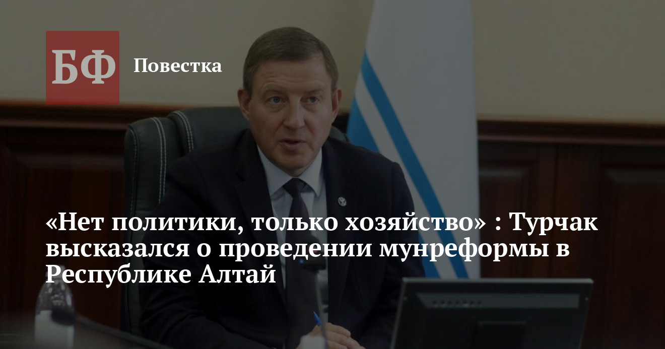 Глава Республики Алтай Андрей Турчак в ходе общения с населением в рамках прямой линии, прошедшей 4 сентября, прокомментировал переход на одноуровневую систему управления в муниципалитетах региона. С его слов, муниципальная реформа не имеет никакого отношения к земельному вопросу. Он считает повышенную тревогу вокруг этой темы избыточной.
