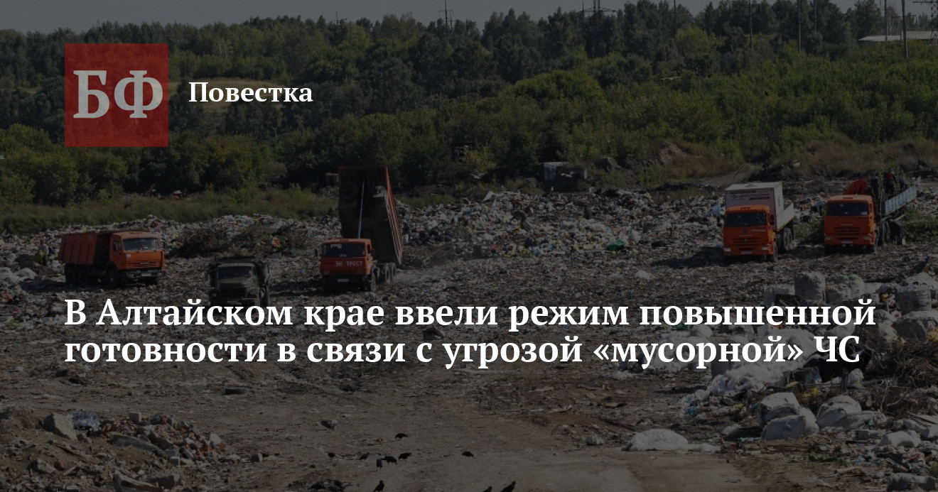 Правительство Алтайского края ввело режим повышенной готовности в границах пяти муниципалитетов, отходы которых на минувшей неделе отказался принимать полигон ТКО в селе Зудилово Первомайского района. Власти решили, что пока мусор с этих территорий будут направлять на барнаульскую свалку. При этом изменения в транспортировке могут грозить повышением тарифов.