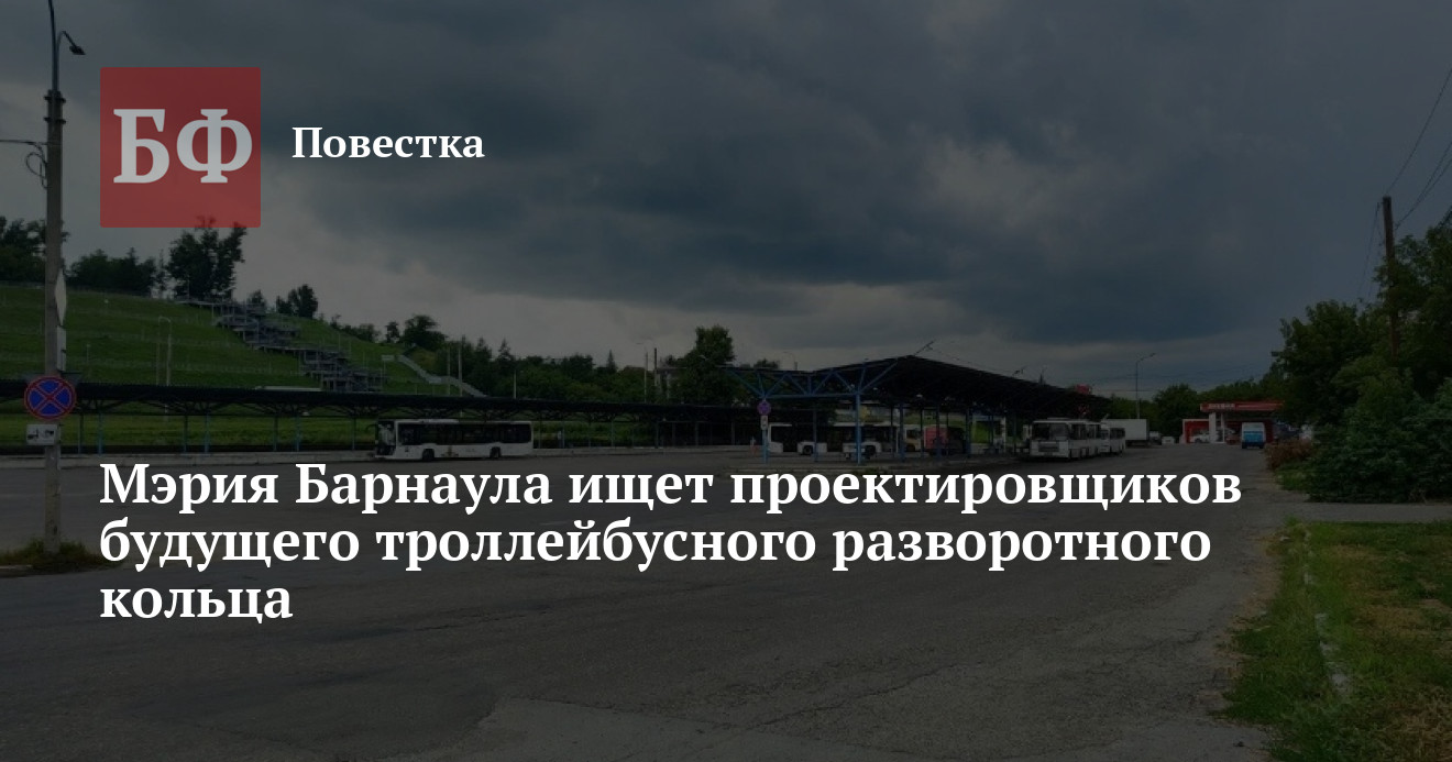 Комитет по дорожному хозяйству и транспорту Барнаула заказал разработку проектно-сметной документации на перенос разворотного троллейбусного кольца, которое сейчас находится в районе конечной остановки «Речной вокзал». Объект намерены переместить с площади Баварина на остановку «Спартак-2». Начальная цена контракта составляет почти 10 млн рублей, сообщается на сайте госзакупок.
