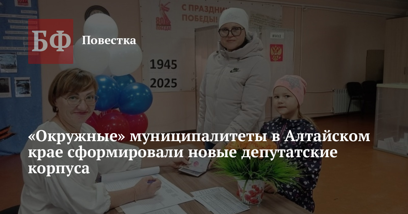 По данным краевого избиркома, жителям восьми новых муниципальных округов в регионе необходимо было сформировать первые составы представительных органов. Речь идет о бывших Зональном, Ключевском, Кулундинском, Немецком национальном, Панкрушихинском, Петропавловском, Солонешенском, Табунском районах, которые приняли решение преобразоваться в округа. В каждом представительном органе нового муниципального образования предстояло избрать по 15 депутатов. В результате в пяти округах (Зональном, Кулундинском, Панкрушихинском, Петропавловском, Панкрушихинском) абсолютное лидерство оказалось за единороссами, которые занимают все вакантные мандаты.