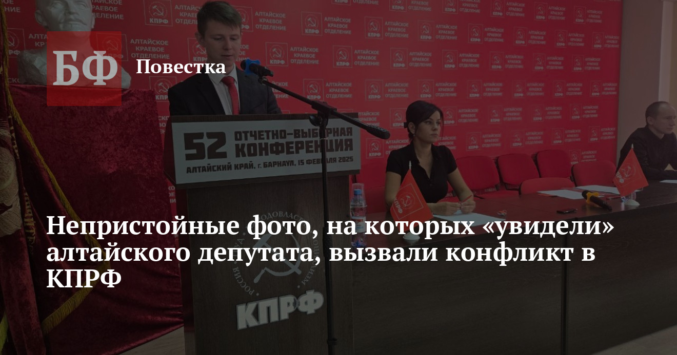 На очередном пленуме барнаульского горкома КПРФ, прошедшем 20 сентября, случился скандал из-за размещенных в Сети фотографий с человеком, похожим на депутата Алтайского Заксобрания, секретаря городского комитета партии Александра Волобуева. Это дало повод околополитическим Telegram-каналам уличить молодого парламентария в непристойном поведении. Судя по словесной перепалке между партийцами, в которой участвовала персек крайкома, депутат Госдумы Мария Прусакова, некоторые коммунисты отреагировали на ситуацию довольно болезненно. О конфликте в стане КПРФ стало известно из видео, которое опубликовала глава алтайского реготделения партии «Коммунисты России» Юлия Гаазе.