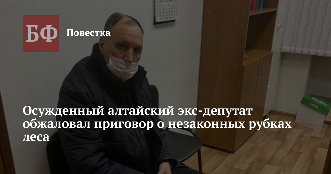 В Новосибирский областной суд направлена апелляционная жалоба генерального директора ООО «Алтай-Форест», экс-депутата Алтайского Заксобрания Николая Бушкова, которого в августе осудили за незаконные рубки леса. Судя по всему, бывший народный избранник намерен смягчить и без того лояльный приговор.