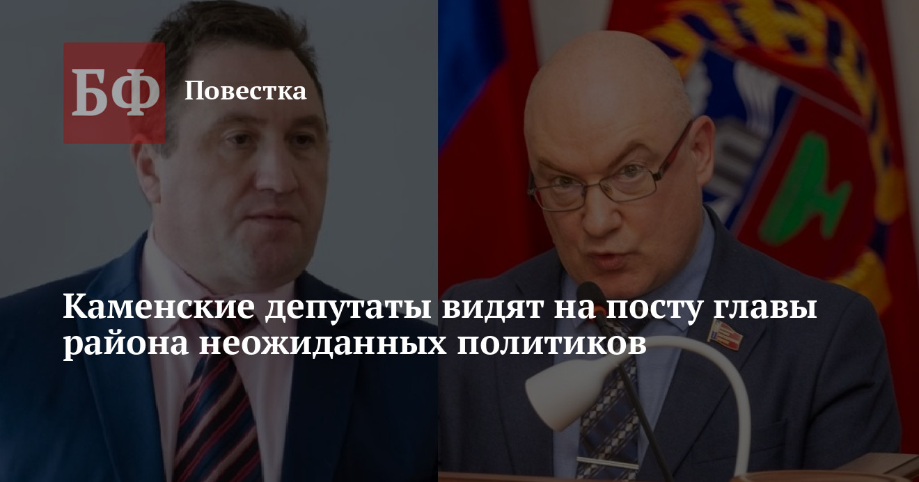 В связи с объявлением конкурса на должность главы Каменского района от заинтересованных депутатов, предположительно, стали звучать имена политиков, которых они хотели бы видеть на посту руководителя. По информации источника ИА «Банкфакс», некоторые мундепы, к примеру, могли обсуждать кандидатуру бывшего вице-губернатора Алтайского края Андрея Щукина, который в последние годы обосновался в соседней Новосибирской области. Другие же члены районного Собрания в качестве возможного главы предпочли бы видеть депутата краевого Заксобрания, лидера партии «Коммунисты России» Сергея Малинковича.