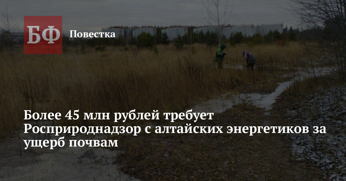 Южно-Сибирское Межрегиональное управление Росприроднадзора через Арбитражный суд намерено взыскать c АО «СГК- Алтай» более 45 млн рублей за вред, который компания могла причинить почвам. Соответствующий иск опубликован в картотеке арбитража.
