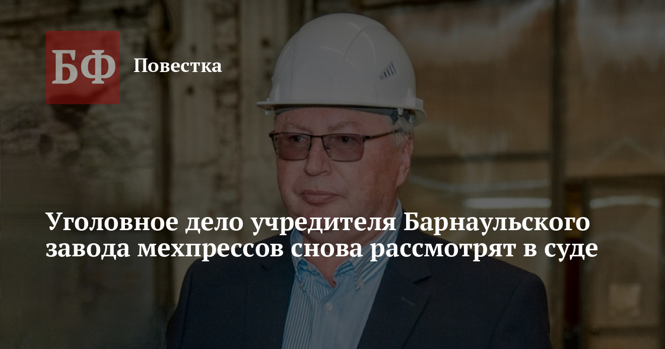 Алтайский краевой суд рассмотрел апелляционное представление прокуратуры по уголовному делу в отношении учредителя Барнаульского завода мехпрессов Сергея Ферапонтова. Как следует из карточки суда, дело вернули в первую инстанцию.