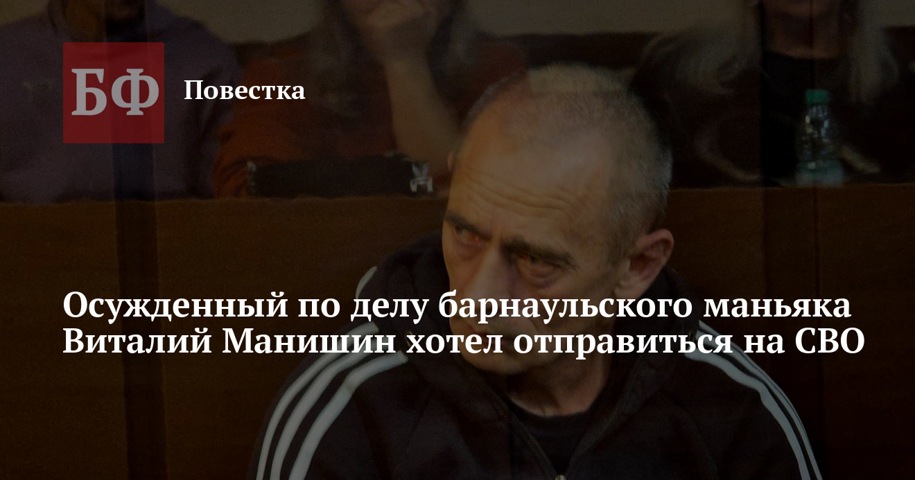 Виталий Манишин, осужденный по делу об убийстве 11 девушек, среди которых были абитуриентки АлтГТУ им. Ползунова, в ходе следствия изъявил желание уйти на СВО. Как сообщил бывший заместитель начальника отдела по раскрытию преступлений против личности в Алтайском крае Иван Ерыкин, его не отправят в зону боевых действий.