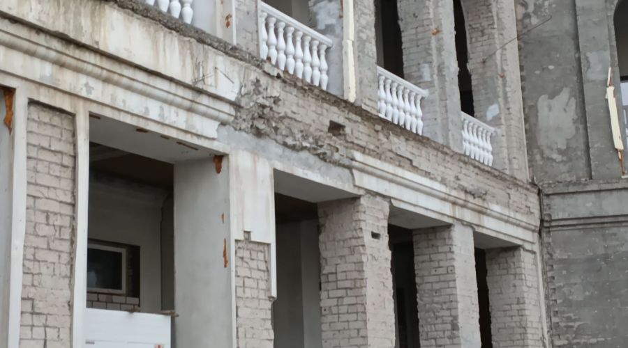 Последний простой на данной строительной площадке тянется около двух лет. Журналисты спросили у директора ООО «Век-Строй» Сергея Зябкина, как вынужденные паузы сказываются на здании. Перед разработкой проекта его компания обследовала объект и должна была определить его состояние. «Простой ни к чему не привел. В принципе, все содержится в надлежащем состоянии – здание отапливается, охраняется. Повреждений, которые бы привели к потери каких-то несущих способностей, нет. В основном, все моменты, которые предстоит исправлять, косметического характера», – считает Сергей Зябкин.